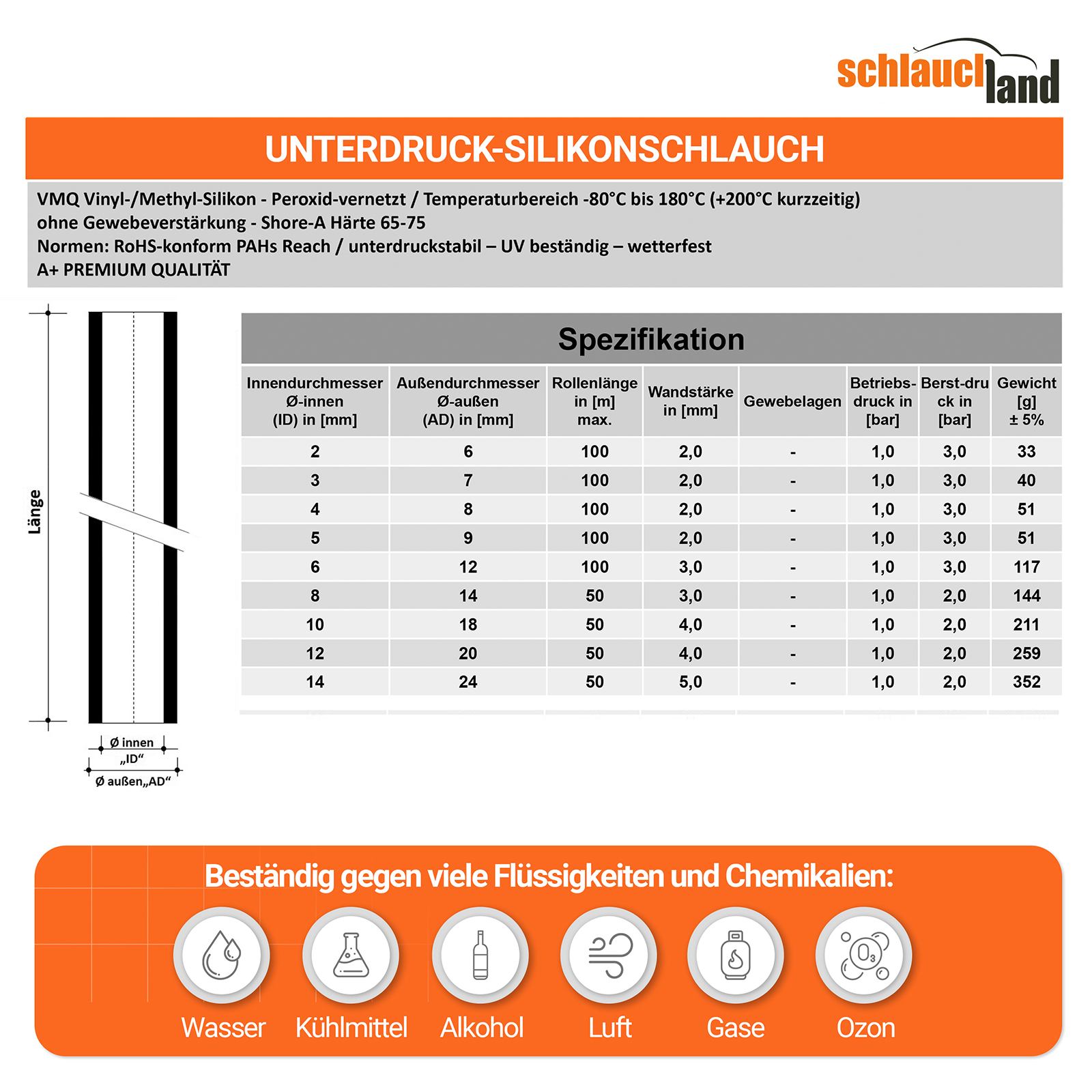 - TYP: Silikonschlauch ohne Gewebeverstärkung | Vakuumschlauch | Unterdruckschlauch – frei von Logo´s / kein Aufdruck